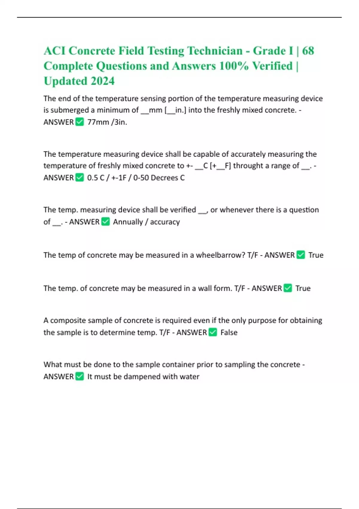 ACI Concrete Field Testing Technician - Grade I | 68 Complete Questions and Answers 100% Verified | Updated 2024