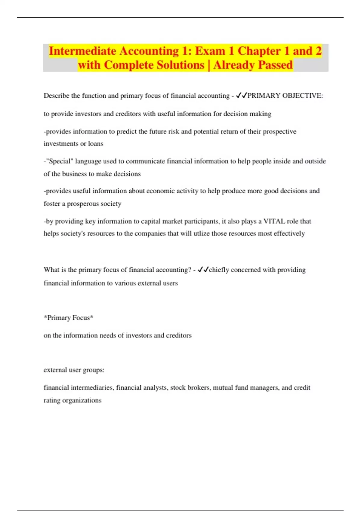 Intermediate Accounting 1: Exam 1 Chapter 1 and 2 with Complete Solutions | Already Passed