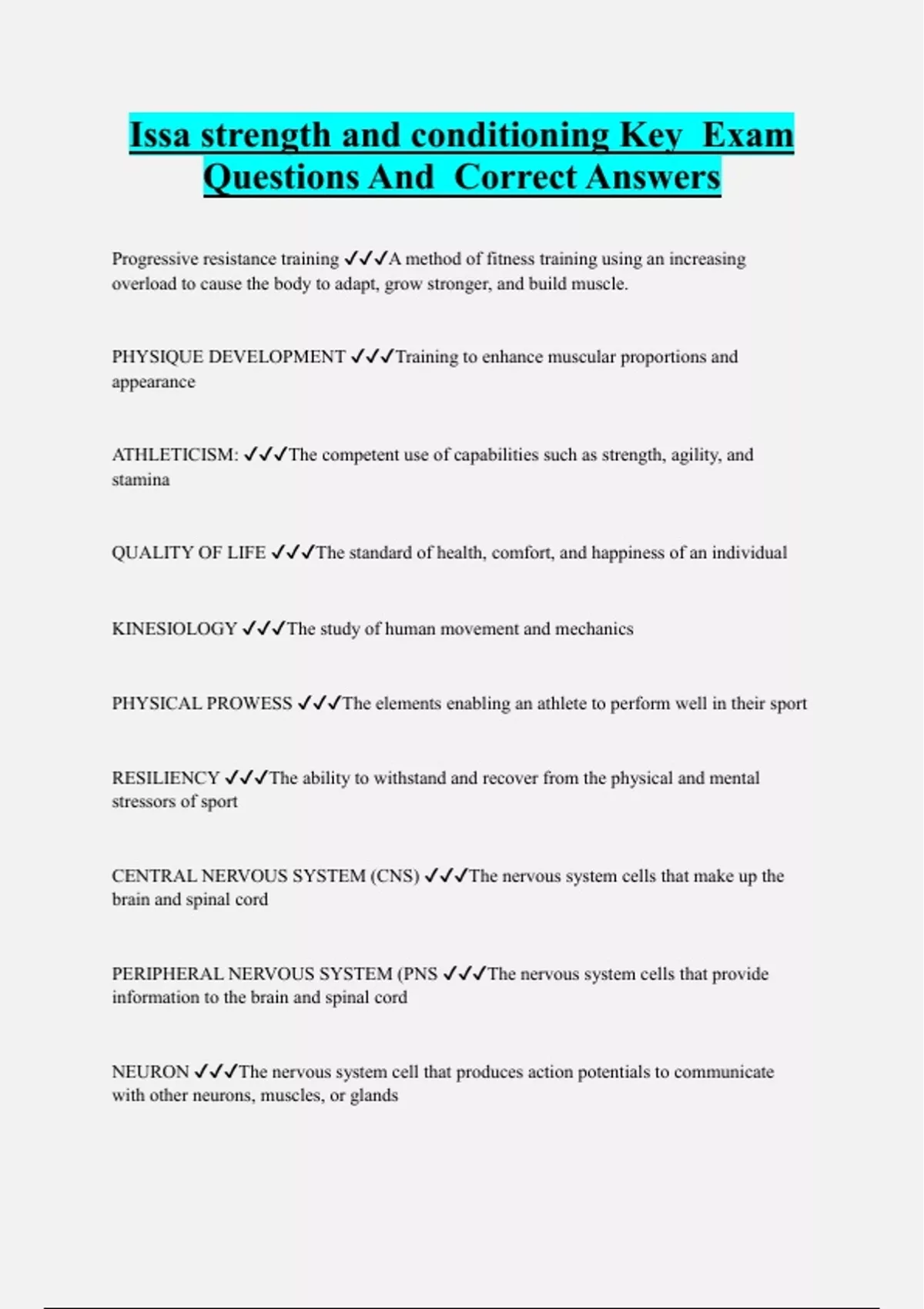 Issa strength and conditioning Key Exam Questions And Correct Answers
