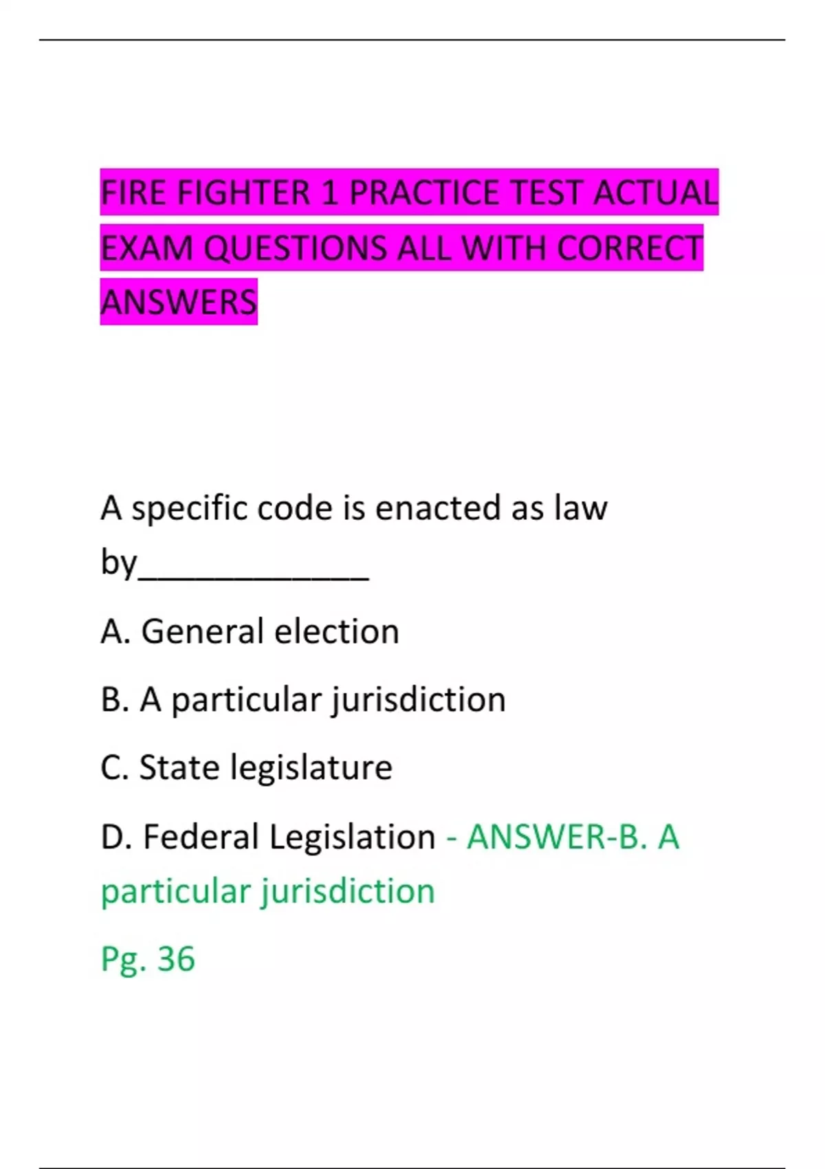 FIRE FIGHTER 1 PRACTICE TEST ACTUAL EXAM QUESTIONS ALL WITH CORRECT ANSWERS