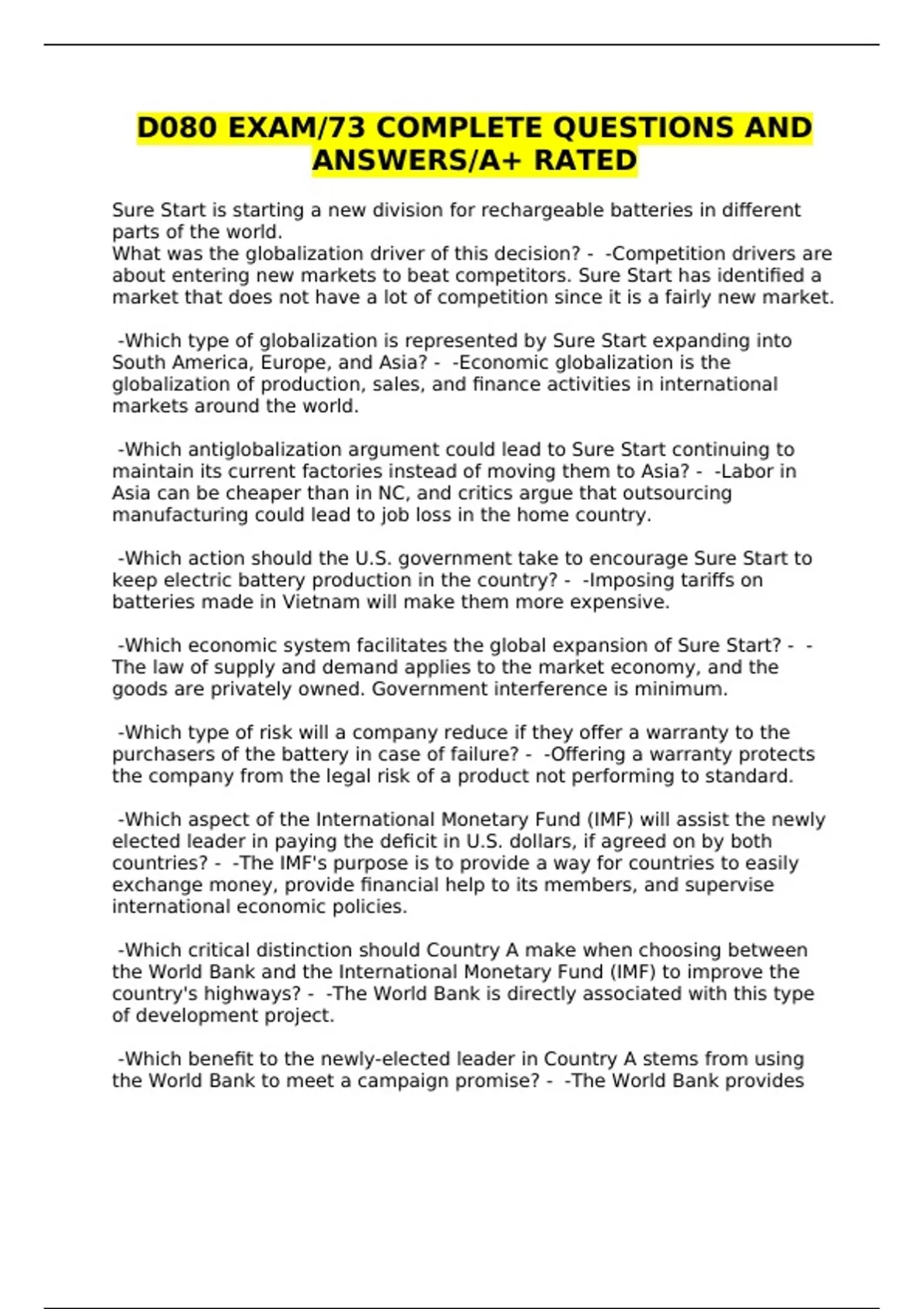D080 EXAM/73 COMPLETE QUESTIONS AND ANSWERS/A+ RATED