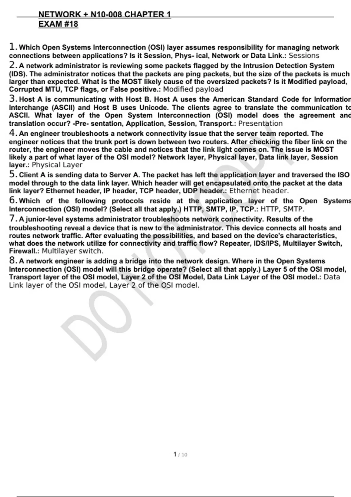 NETWORK + N10-008 CHAPTER 1 EXAM #18