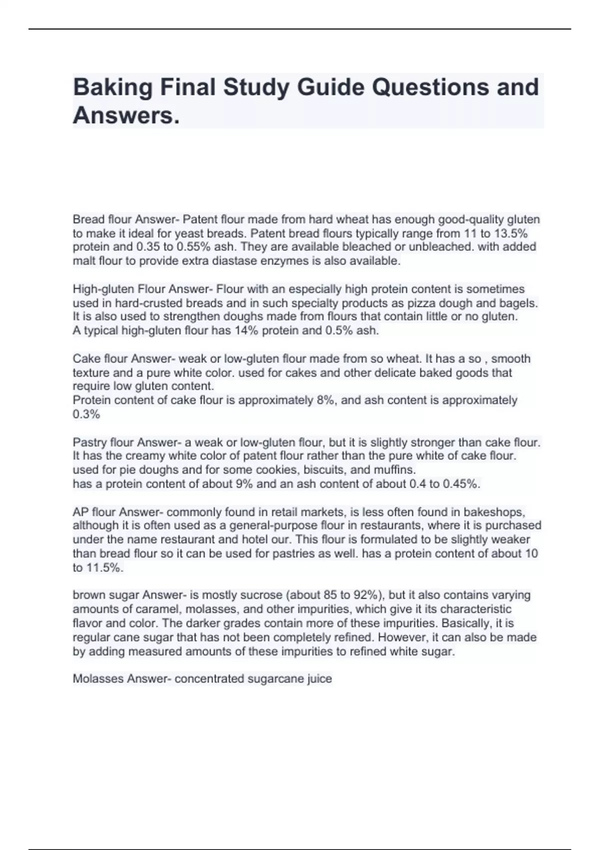 baking final study guide questions and answers