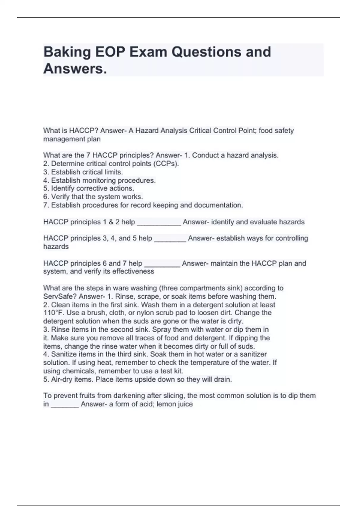 Baking EOP Exam Questions and Answers