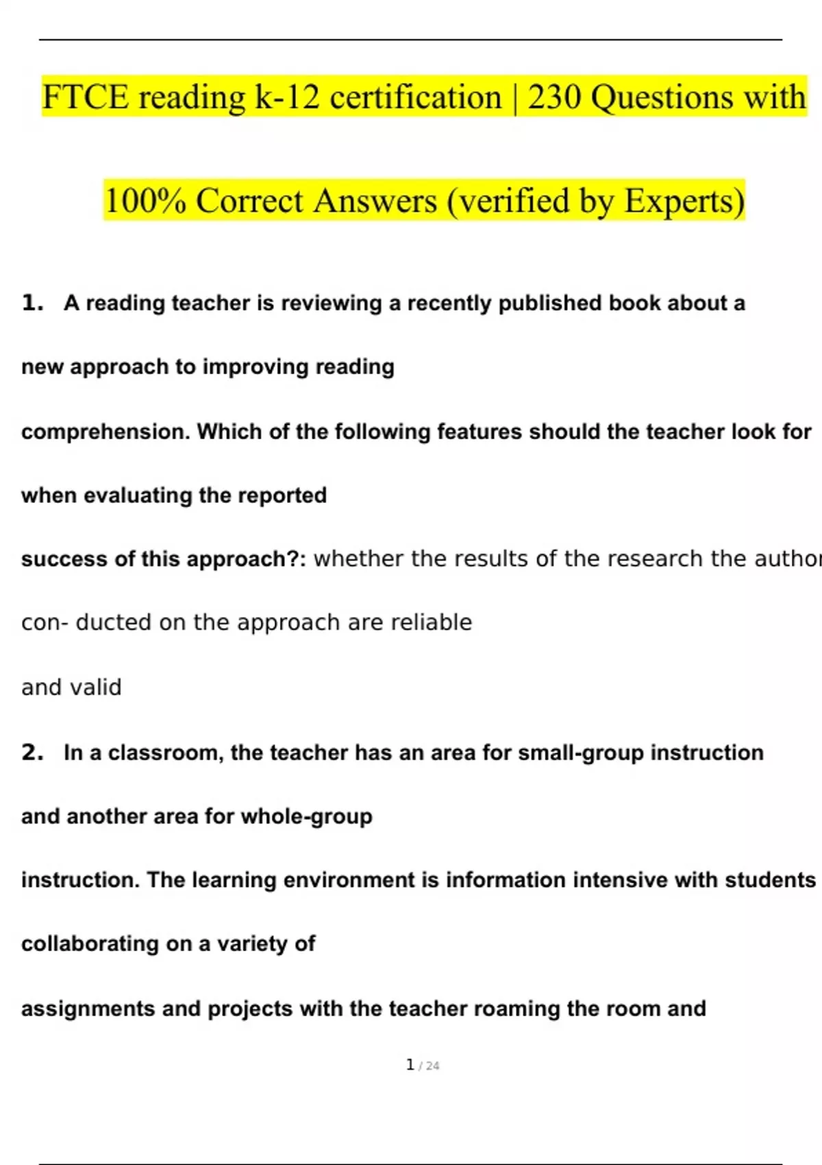 FTCE Reading K-12 Certification Exam Questions and Answers 2023 (100% Verified Answers by Expert)
