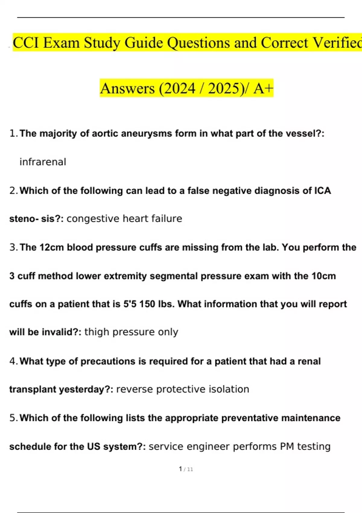 cci exam study guide questions and verified answer