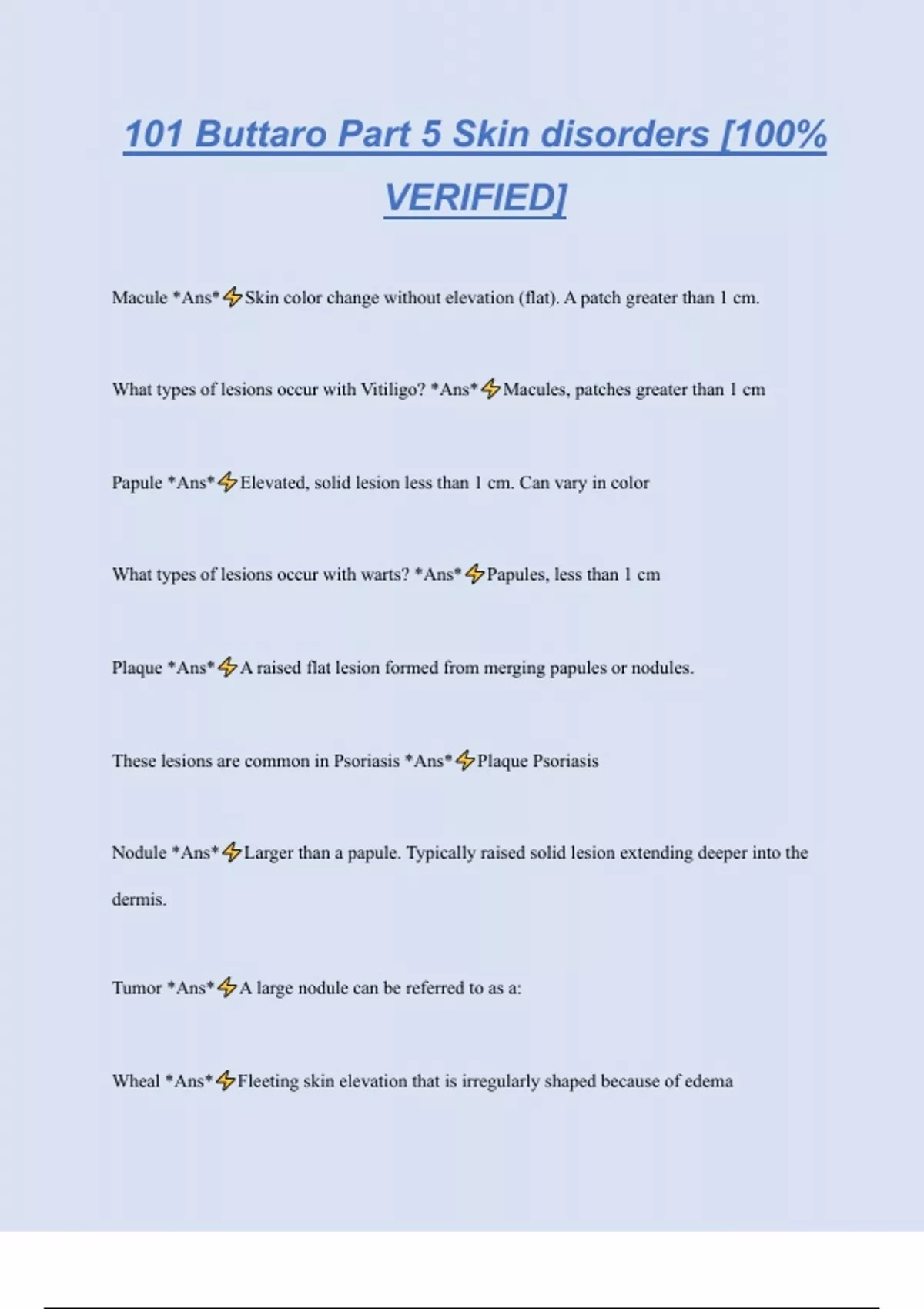 101 Buttaro Part 5 Skin disorders [100% VERIFIED]