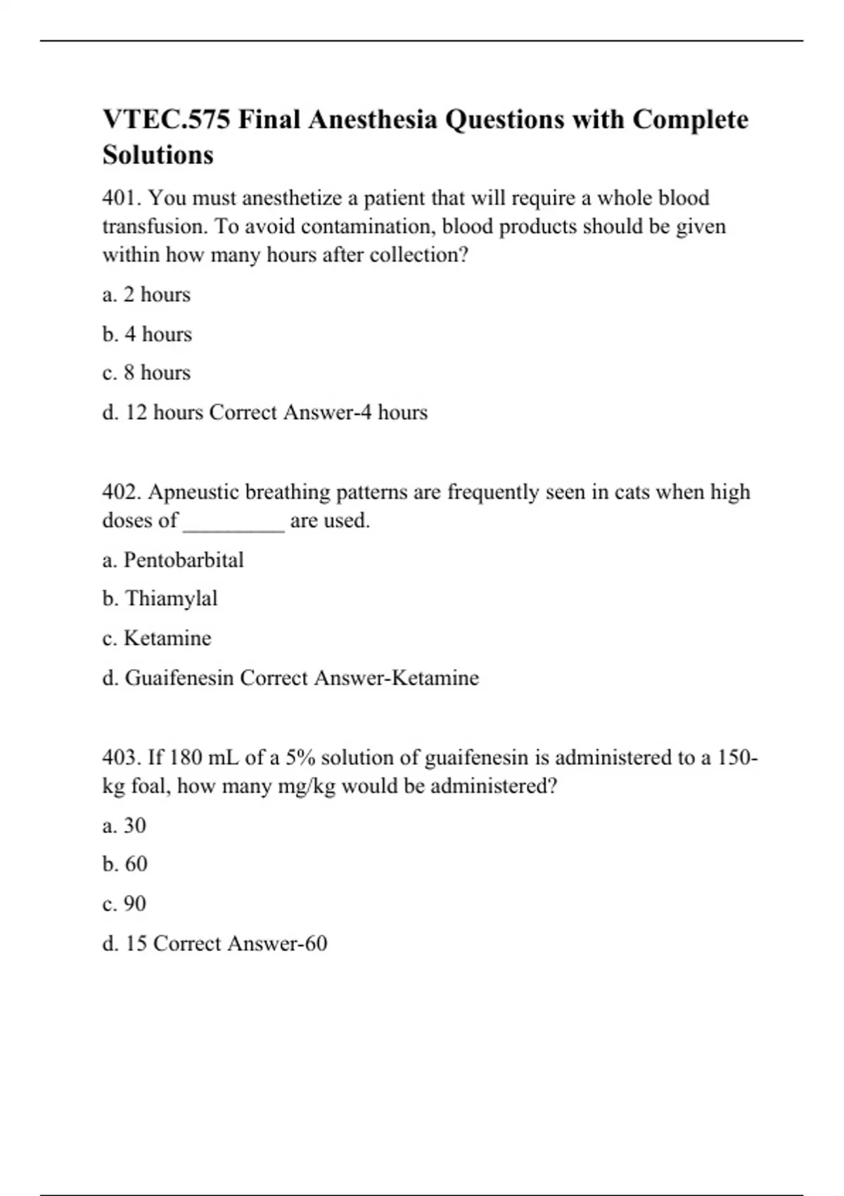 VTEC.575 Final Anesthesia Questions with Complete Solutions