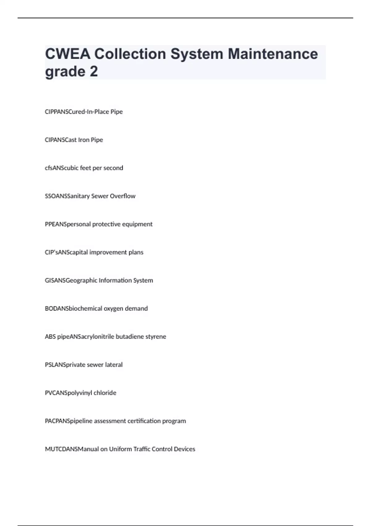 CWEA Collection System Maintenance grade 2 Exam Questions With Best Solutions