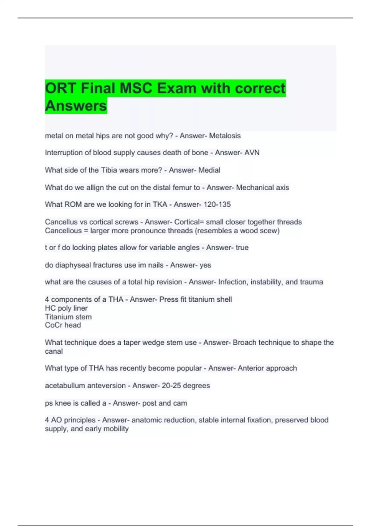 MSC ORT Exam Bundle (Graded A)