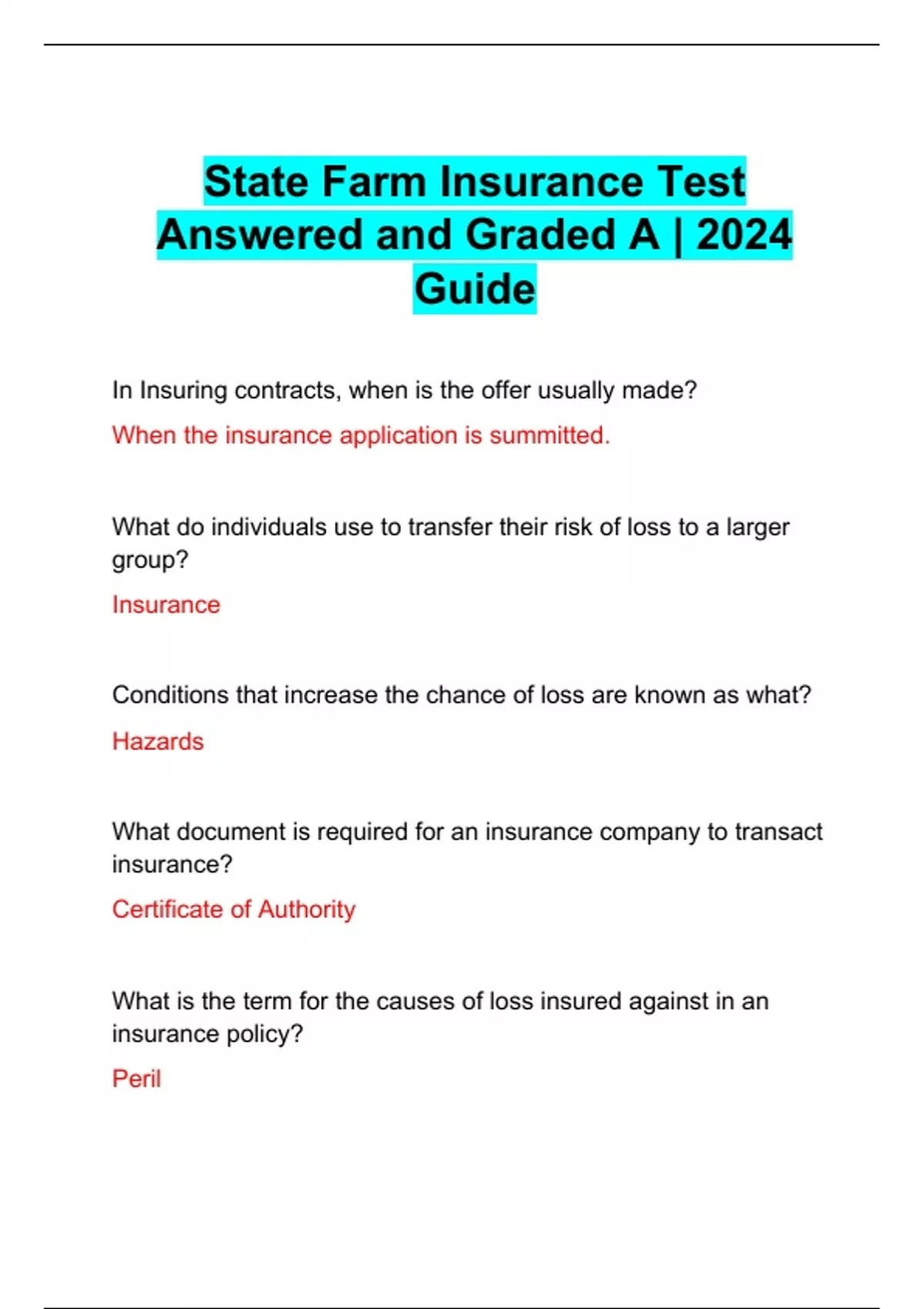 State Farm Insurance Test Answered and Graded A | 2024 Guide State Farm Insurance Test Answered and Graded A | 2024 Guide State Farm Insurance Test Answered and Graded A | 2024 Guide