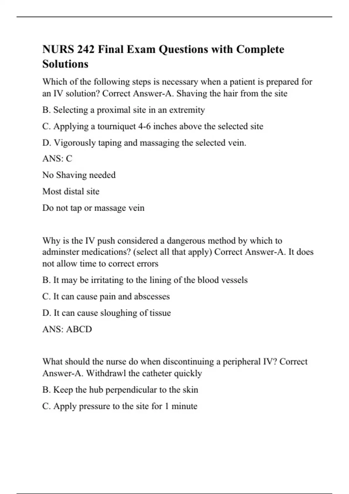 NURS 242 Final Exam Questions with Complete Solutions