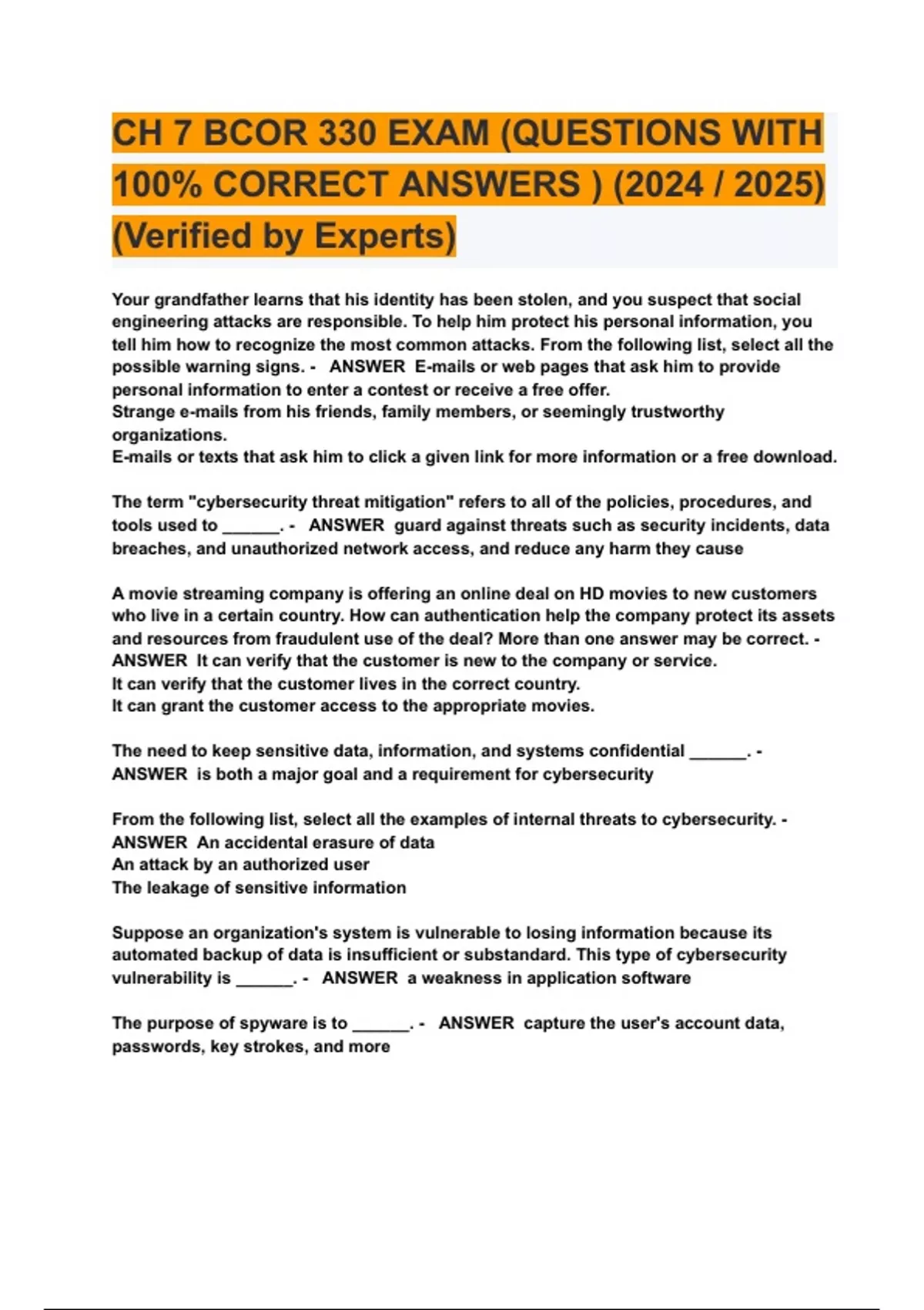 CH 7 BCOR 330 EXAM (QUESTIONS WITH 100% CORRECT ANSWERS ) (2024 / 2025) (Verified by Experts)