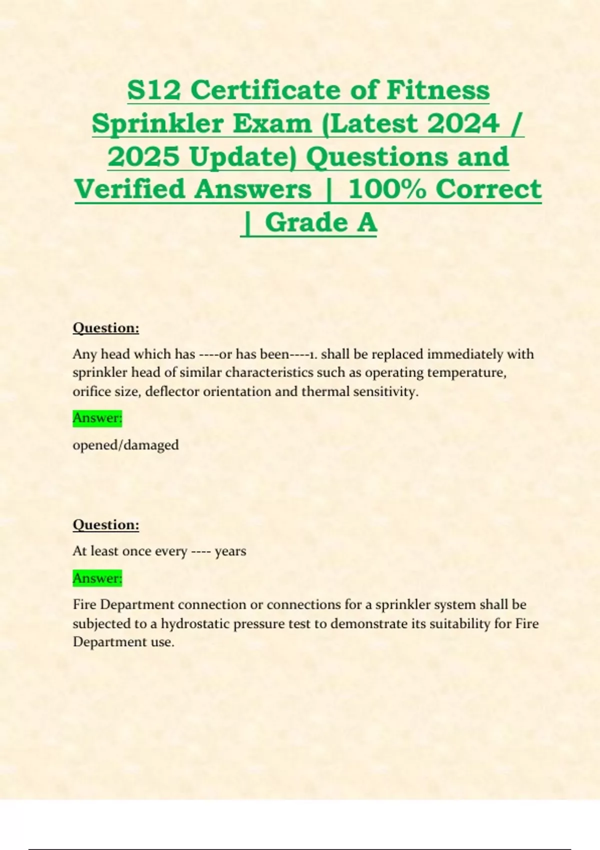 with a----Certificate of Fitness 1. inspect the sprinkler system following the