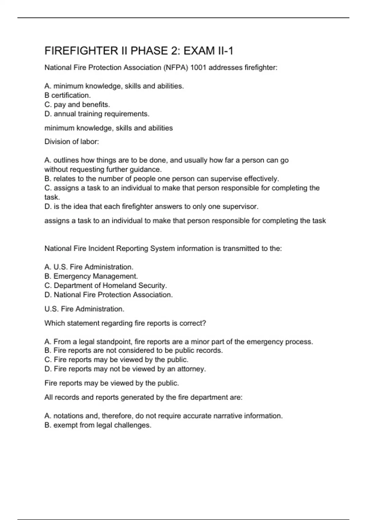 FIREFIGHTER II PHASE 2: EXAM II-1