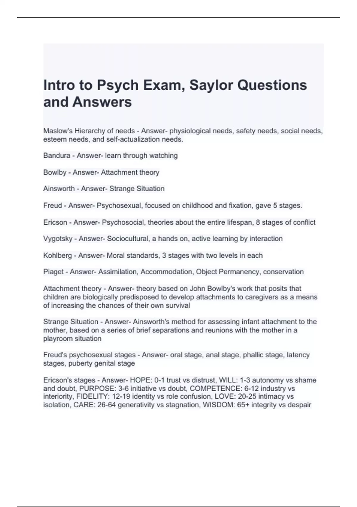 Intro to Psych Exam, Saylor Questions and Answer 2024