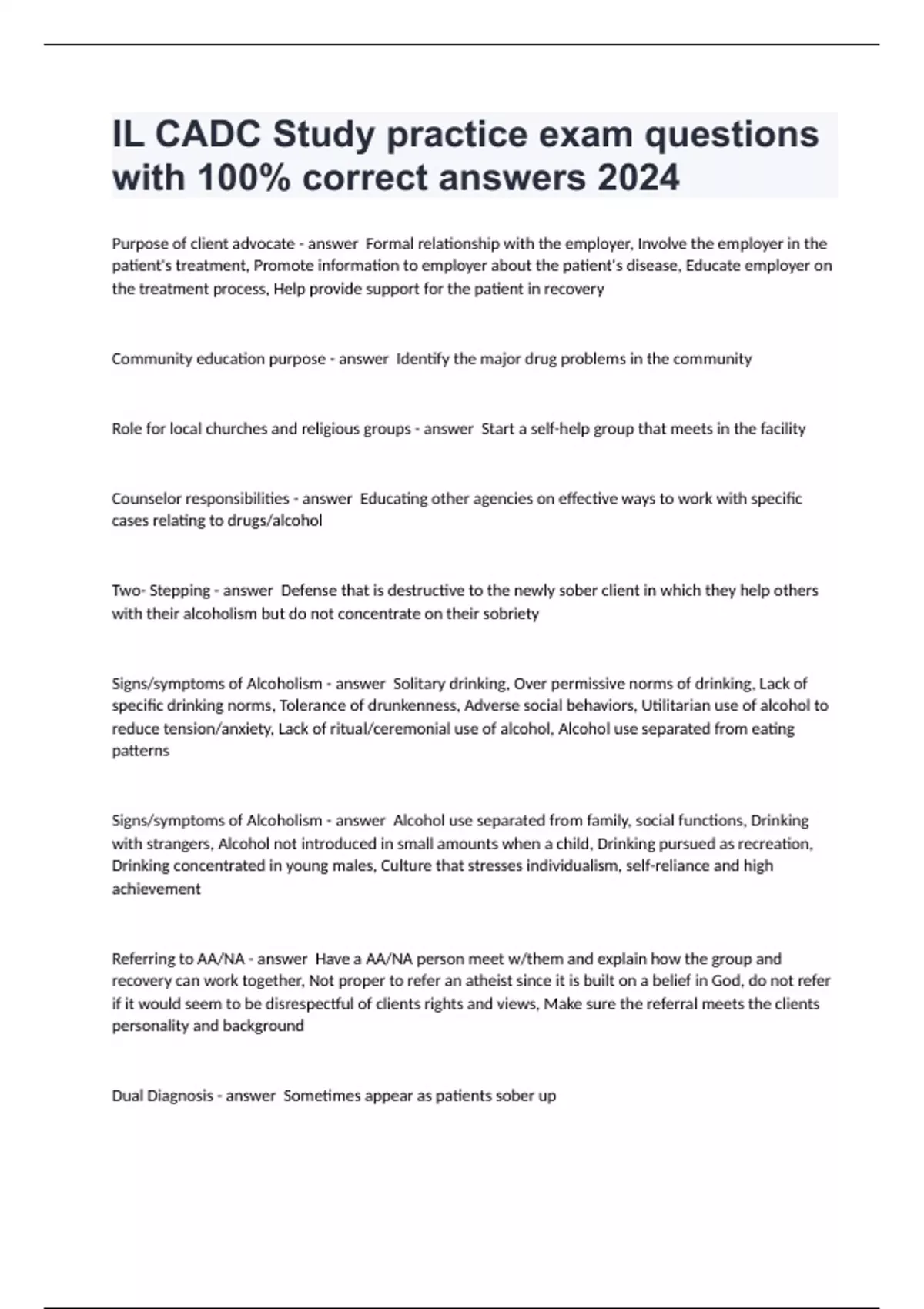 IL CADC Study practice exam questions with 100% correct answers 2024.