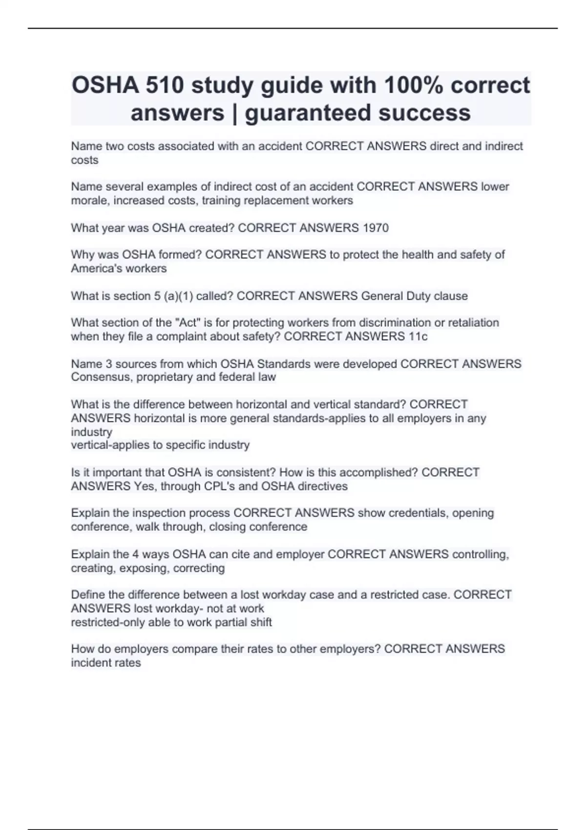 OSHA 510 study guide with 100% correct answers | guaranteed success