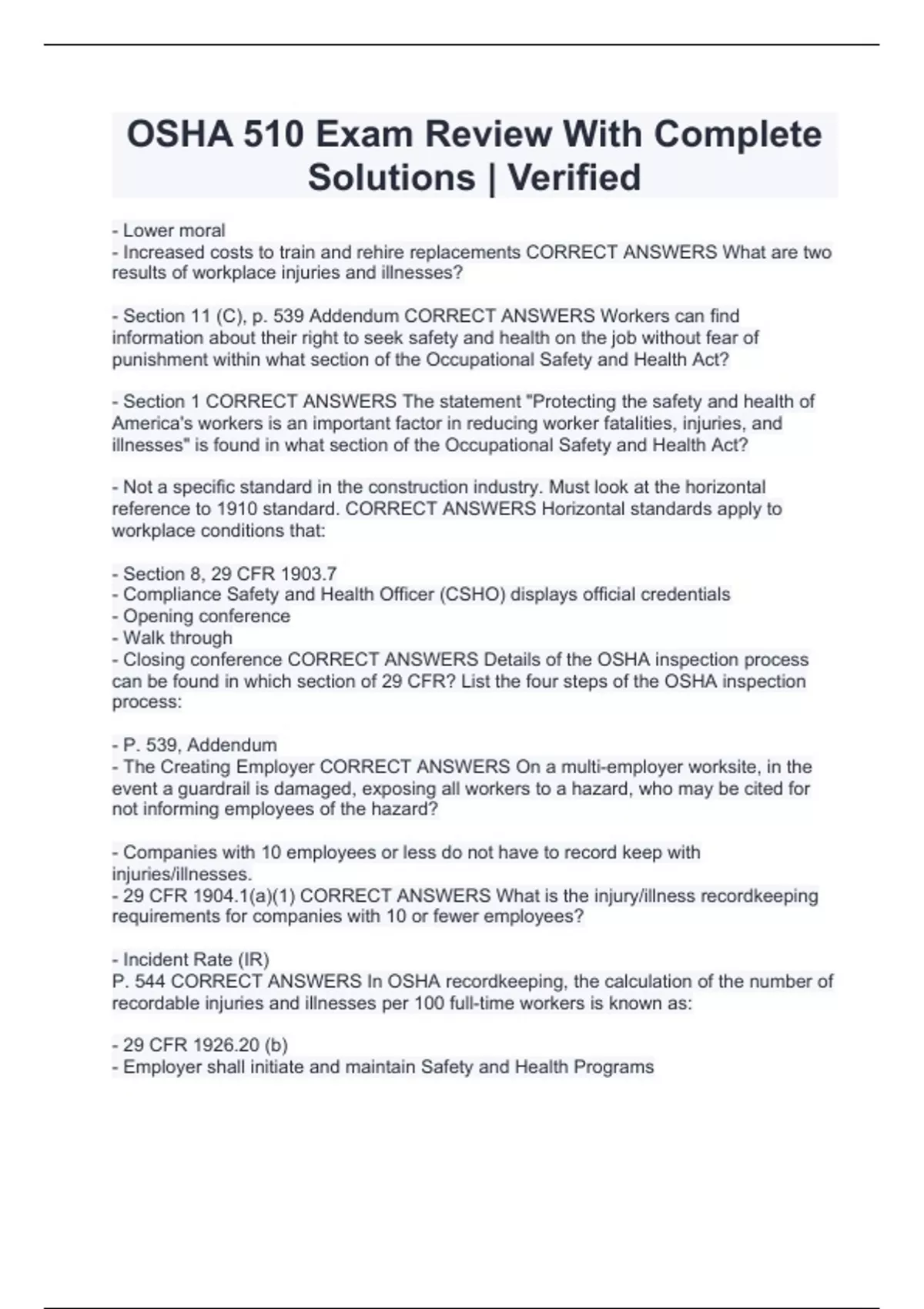 OSHA 510 Exam Review With Complete Solutions | Verified