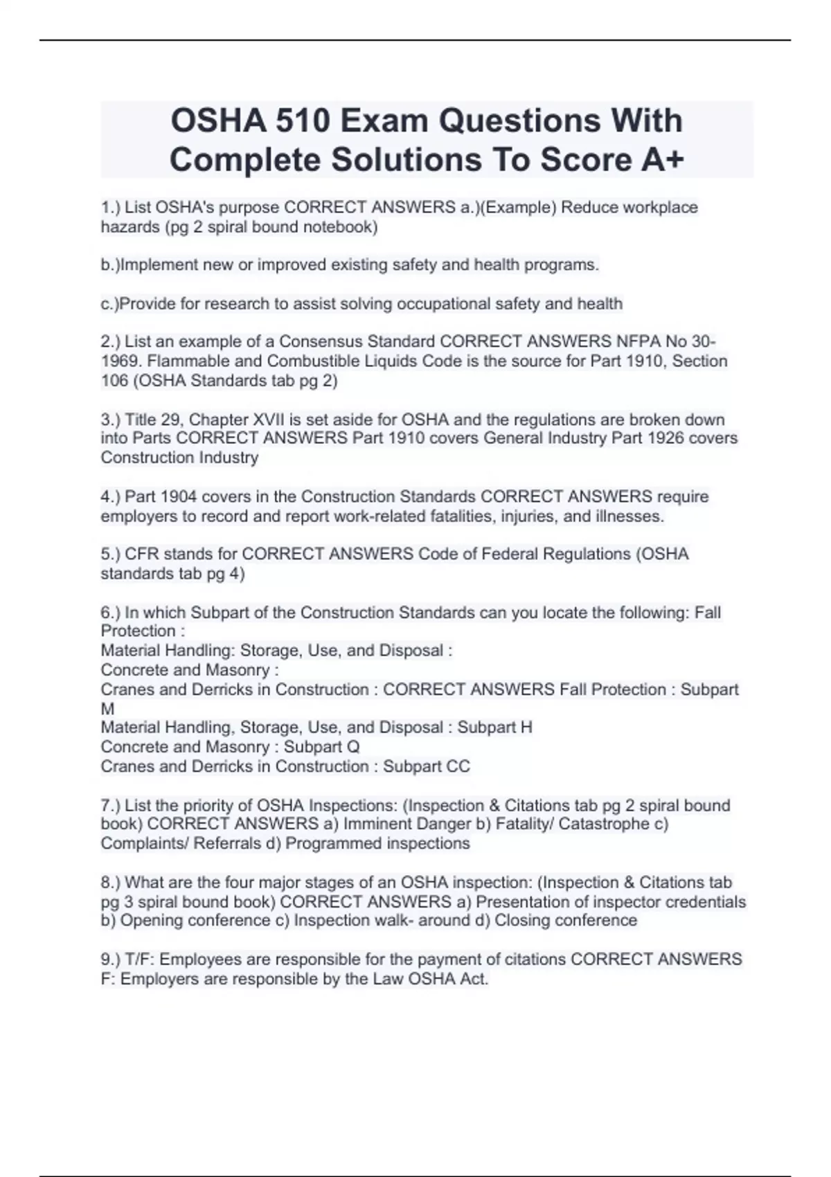 OSHA 510 Exam Questions With Complete Solutions To Score A+