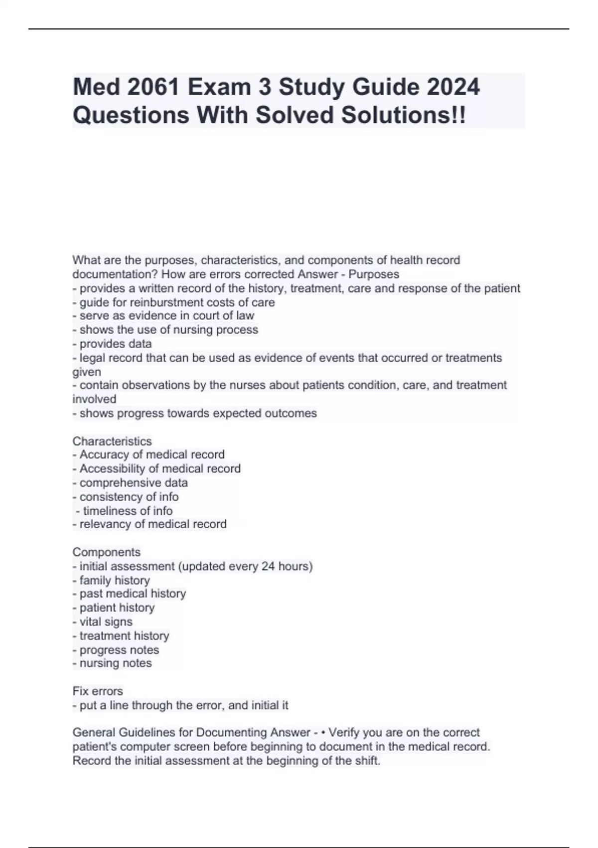 Med 2061 Exam 3 Study Guide 2024 Questions With Solved Solutions!!