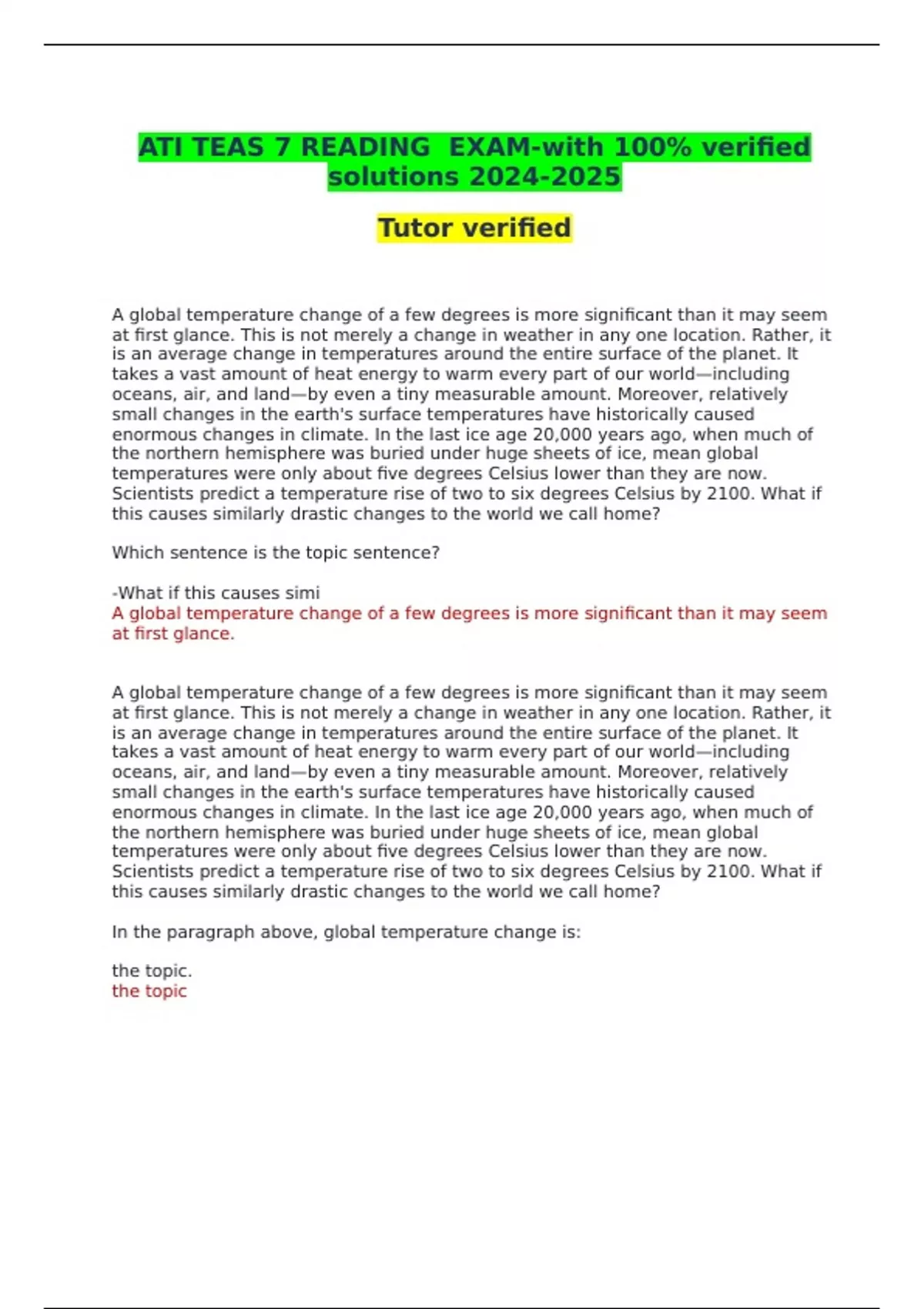 ATI TEAS 7 READING EXAM-with 100% verified solutions