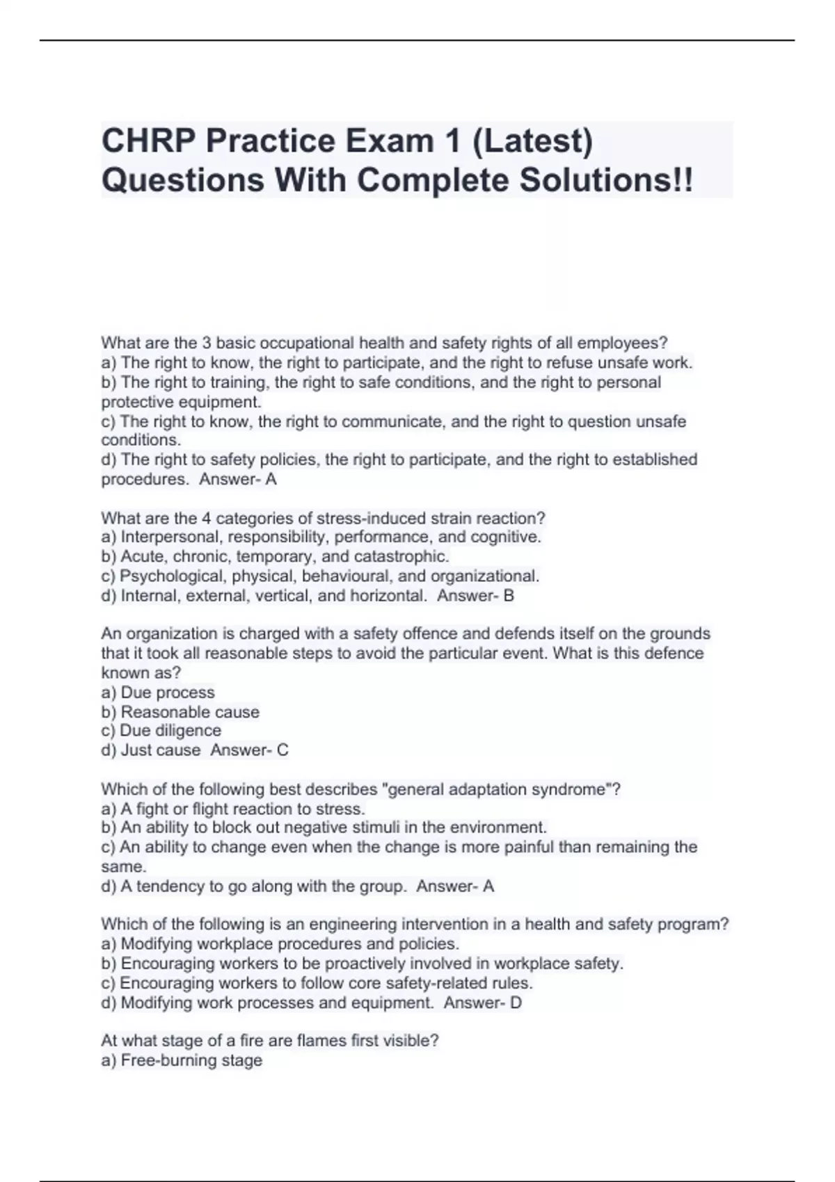 CHRP Practice Exam 1 (Latest) Questions With Complete Solutions!!