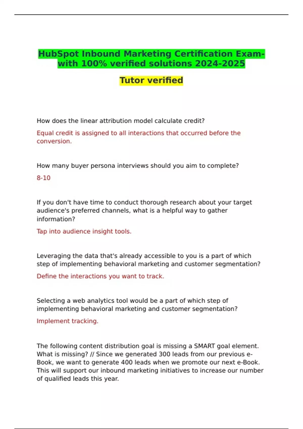 HubSpot Inbound Marketing Certification Exam-with 100% verified solutions