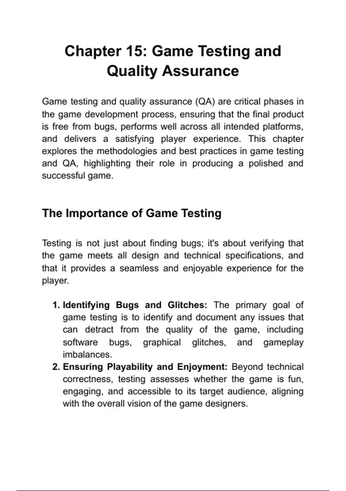 Description: Ensuring game quality through thorough testing and QA processes. Keywords: game testing, quality assurance, QA, processes Questions: Why is game testing and QA important?, How is game quality ensured?