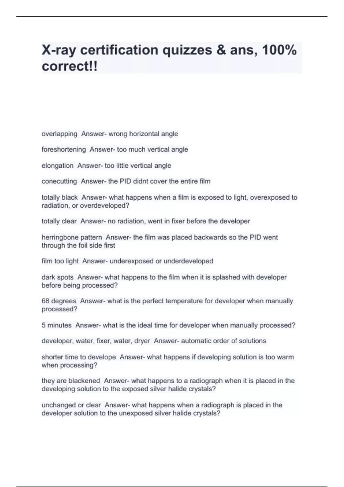 X-ray certification quizzes & ans, 100% correct!!