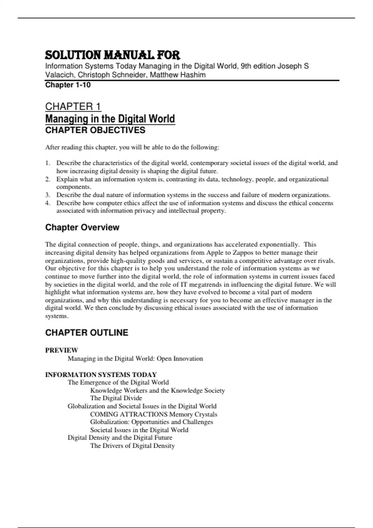 Solution Manual For Information Systems Today Managing in the Digital World, 9th Edition by Joseph S Valacich, Christoph Schneider, Matthew Hashim Chapter 1-10