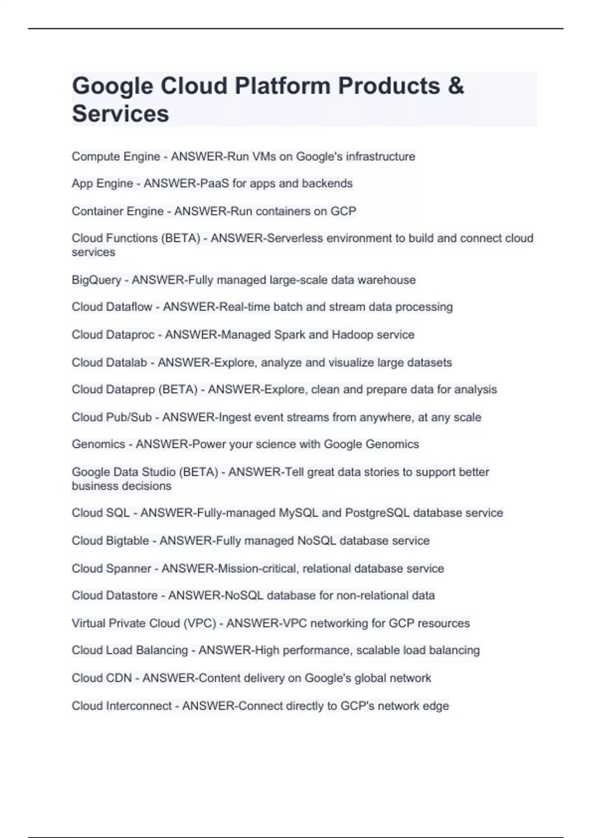 Virtual Private Cloud (VPC) - ANSWER-VPC networking for GCP resources