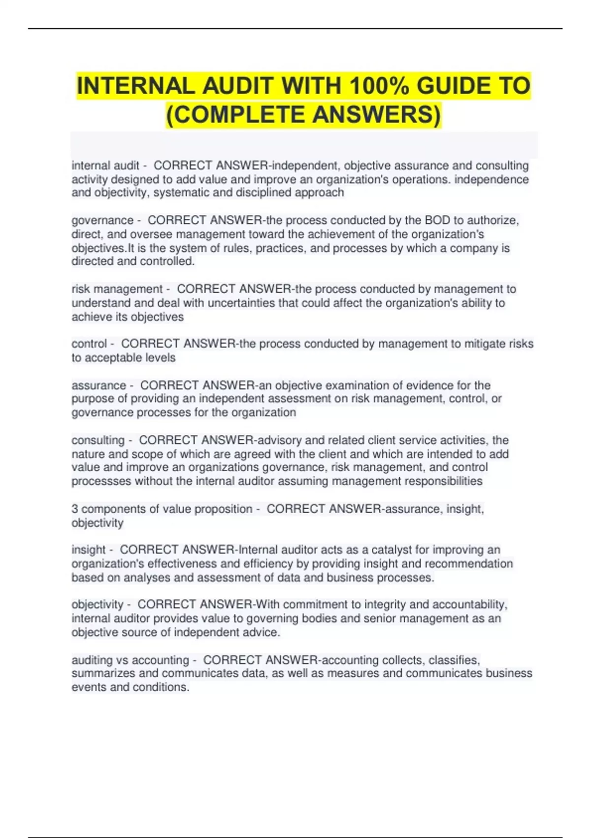 INTERNAL AUDIT WITH 100% GUIDE TO (COMPLETE ANSWERS