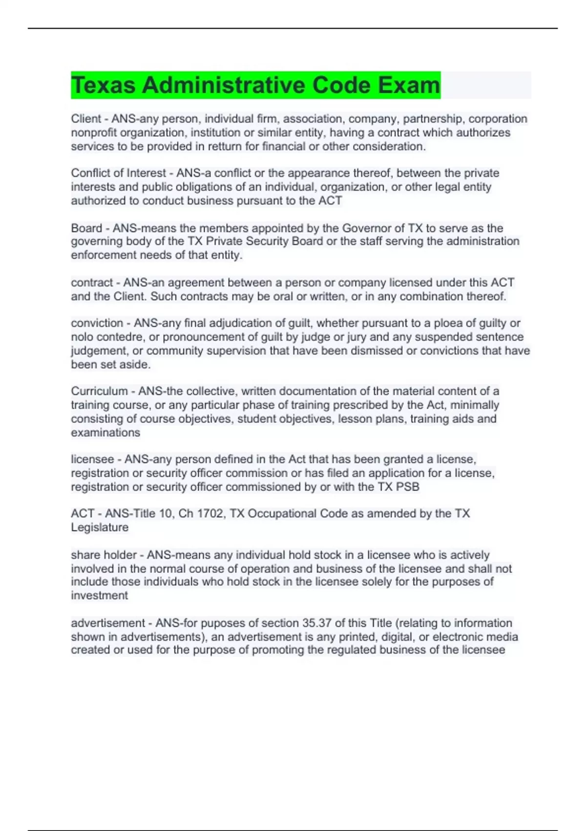 Texas Administrative Code Exam