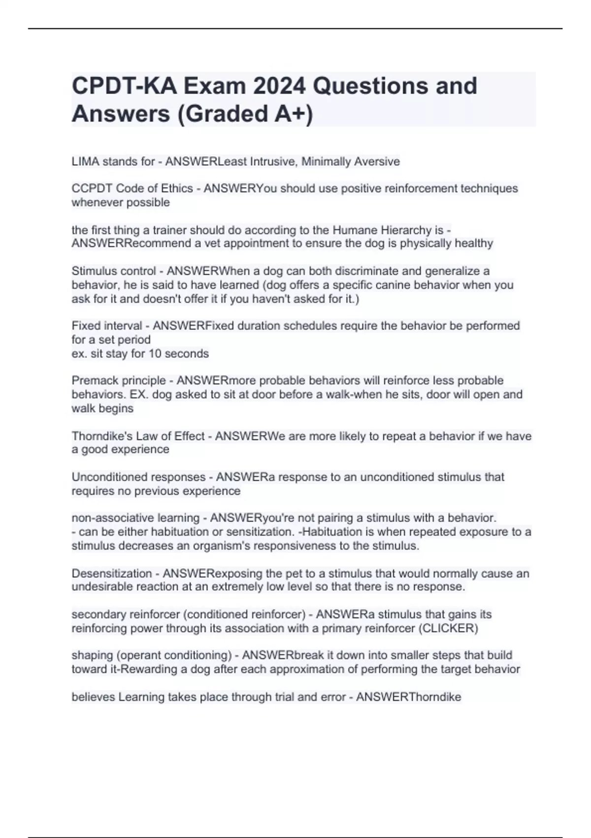 CPDT-KA Exam 2024 Questions and Answers (Graded A+)