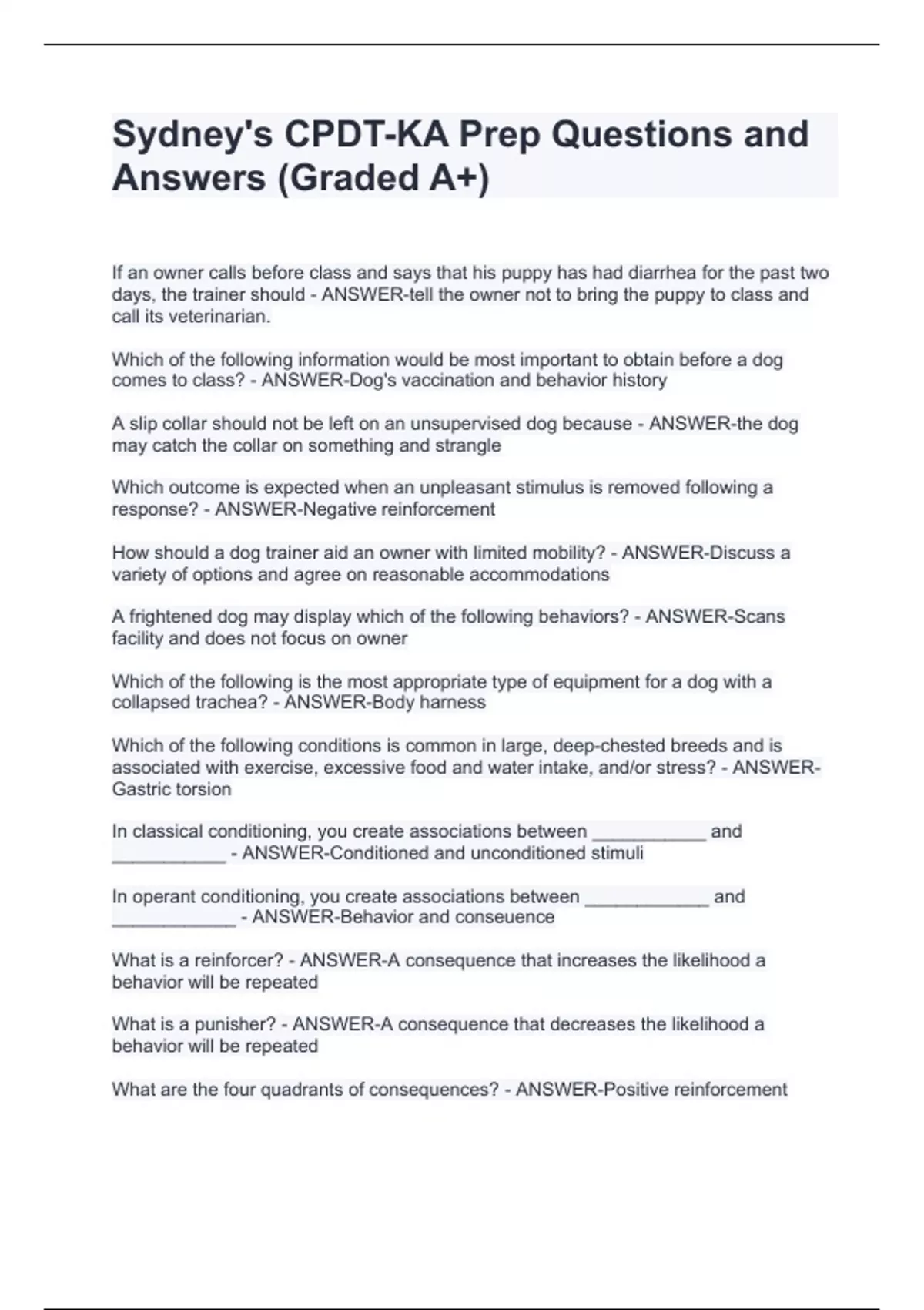 Sydney's CPDT-KA Prep Questions and Answers (Graded A+)