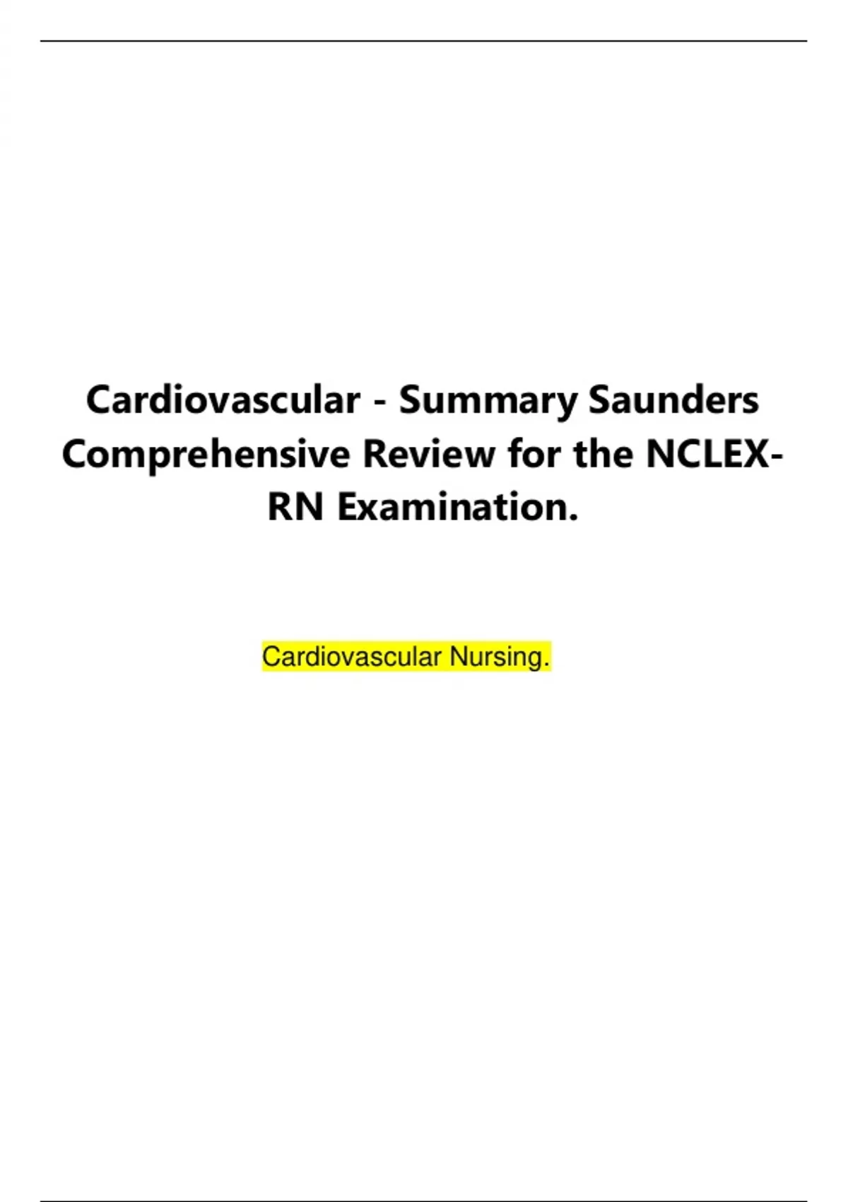 Cardiovascular - Summary Saunders Comprehensive Review for the NCLEXRN Examination.