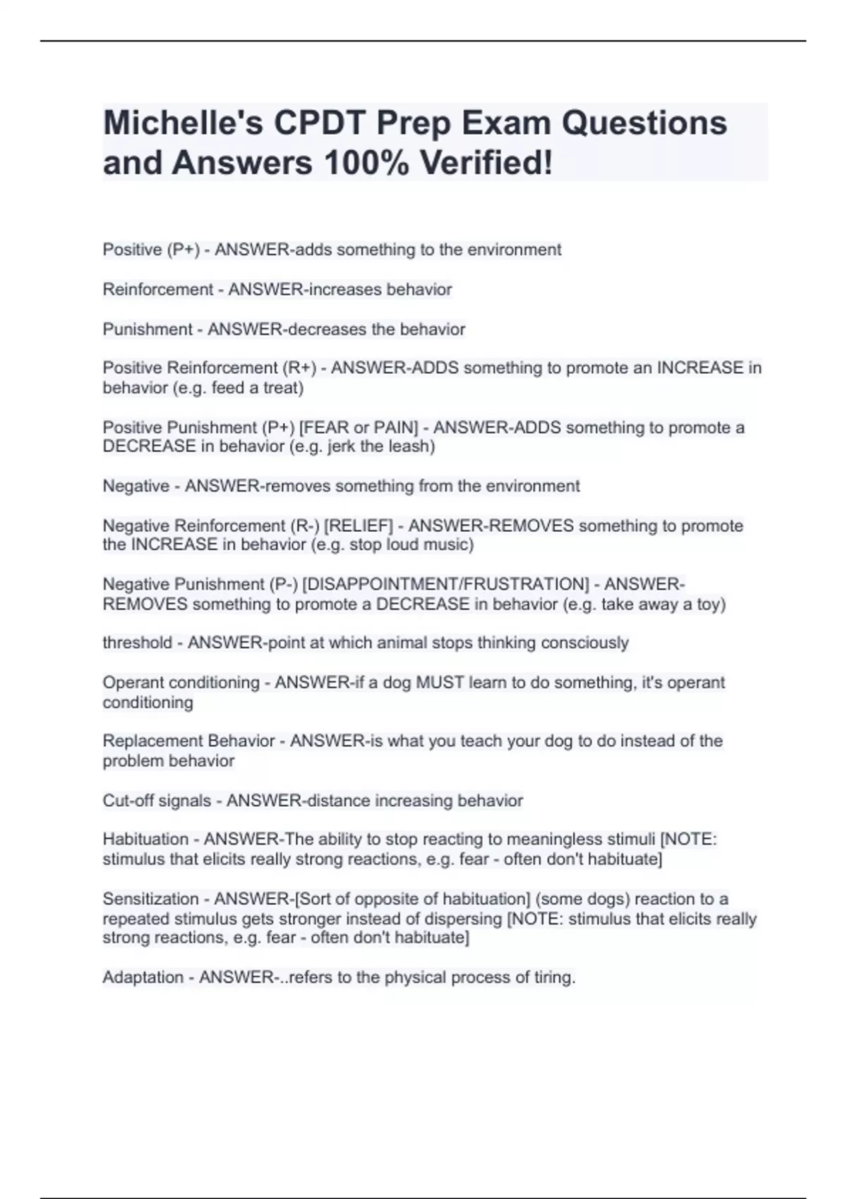 Michelle's CPDT Prep Exam Questions and Answers 100% Verified!