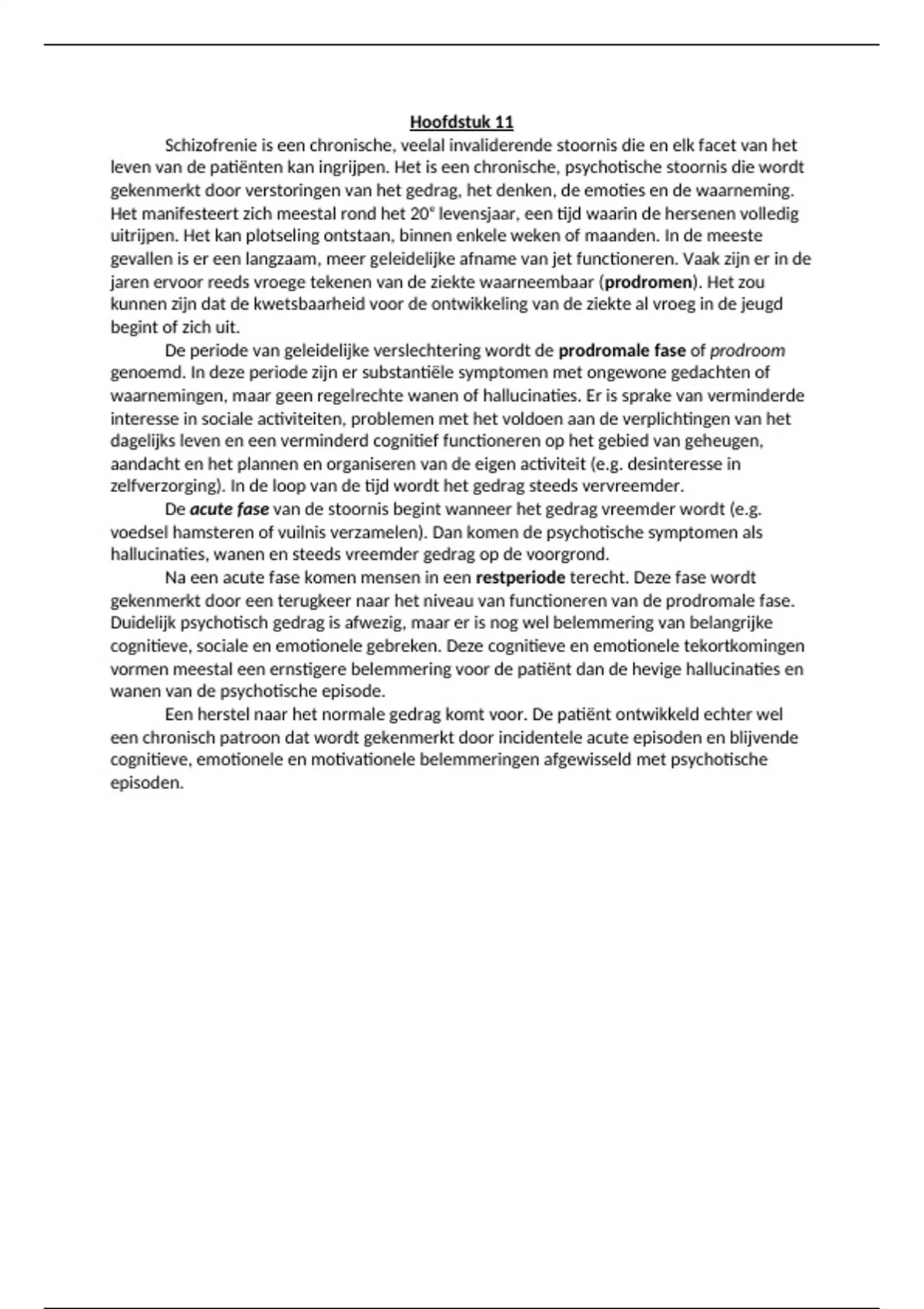 verloop van de stoornis, psychotisch gedrag aanwezig zijn, ten minste gedurende zes