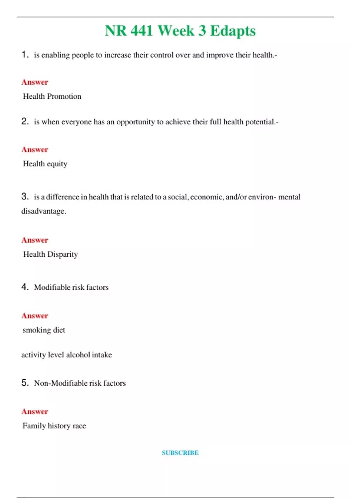 NR 441 Week 3 Edapts (Latest 2024 / 2025) Questions & Answers with rationales