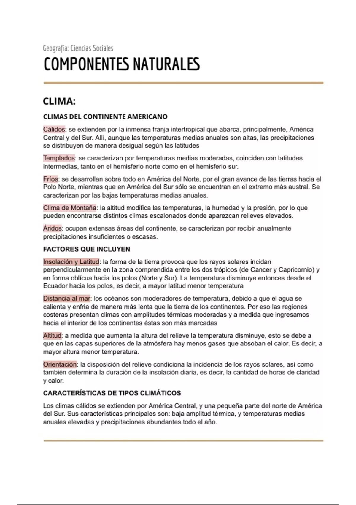 CARACTERÍSTICAS DE TIPOS CLIMÁTICOS