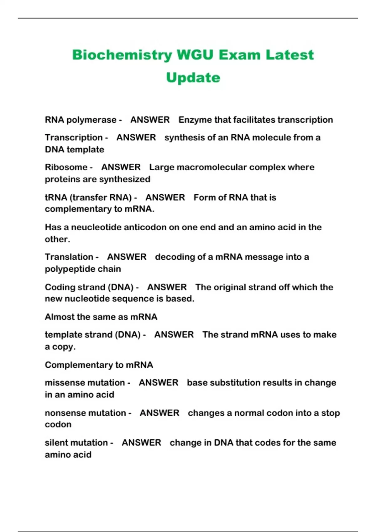 Biochemistry WGU Exam Latest Update ....