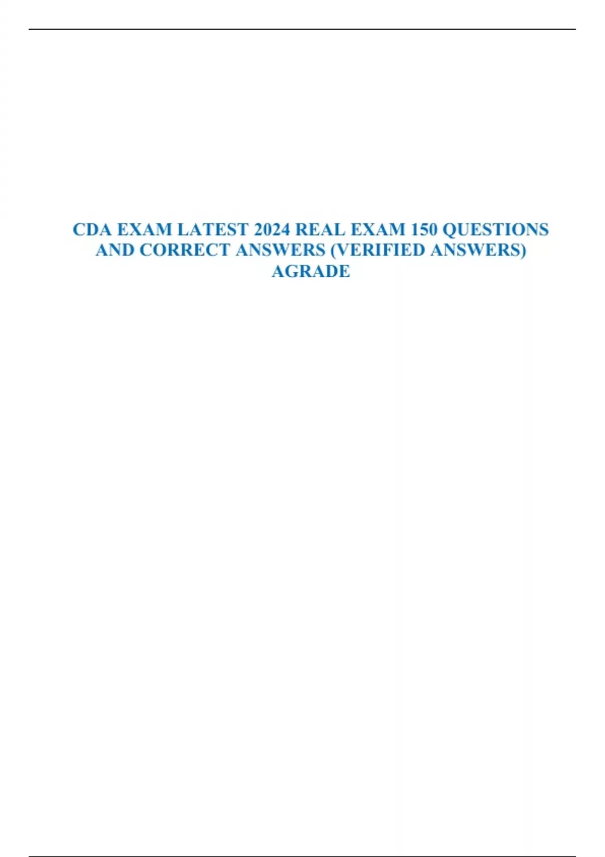 CDA EXAM LATEST 2024 REAL EXAM 150 QUESTIONS AND CORRECT ANSWERS (VERIFIED ANSWERS) AGRADE