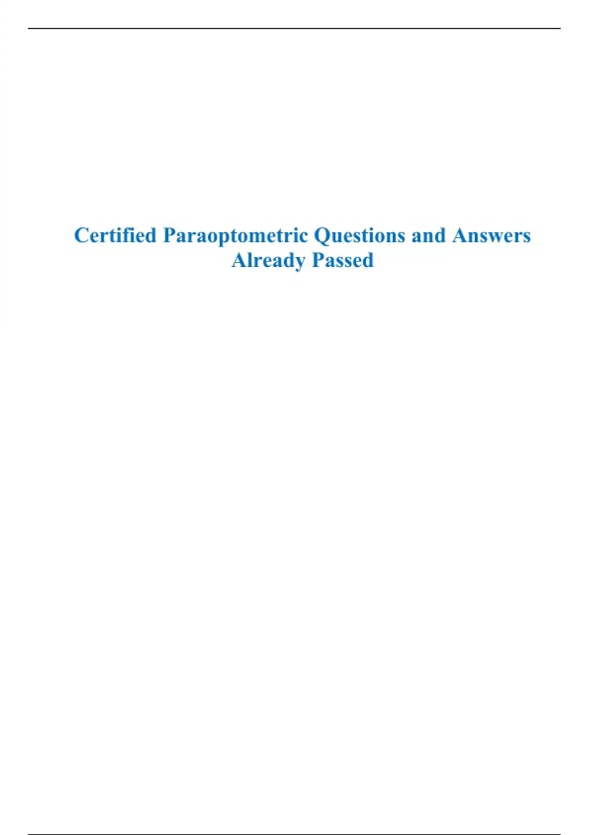 Certified Paraoptometric Questions and Answers Already Passed An optometrist is licensed by which governing body? State