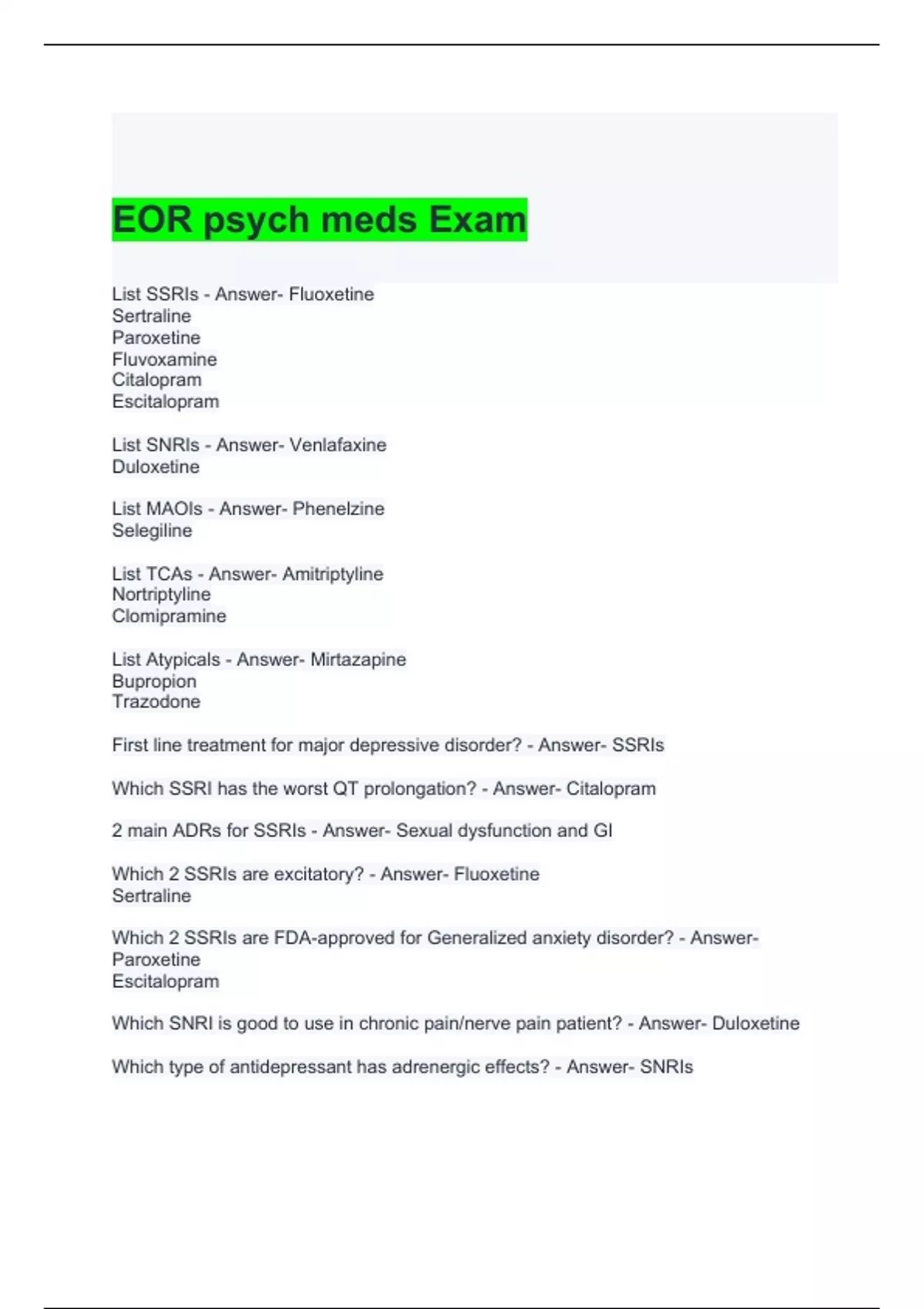 Exam of 5 pages for the course psych EOR at psych EOR (EOR psych meds Exam)
