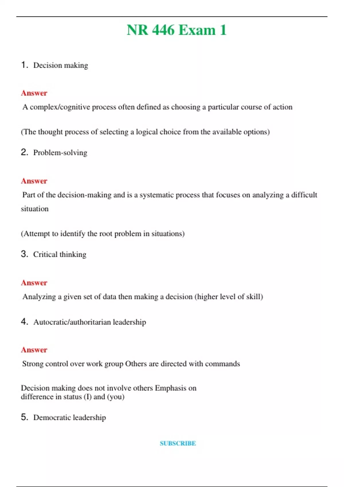 NR 446 Exam 1 (Latest 2024 / 2025) Questions & Answers with rationales