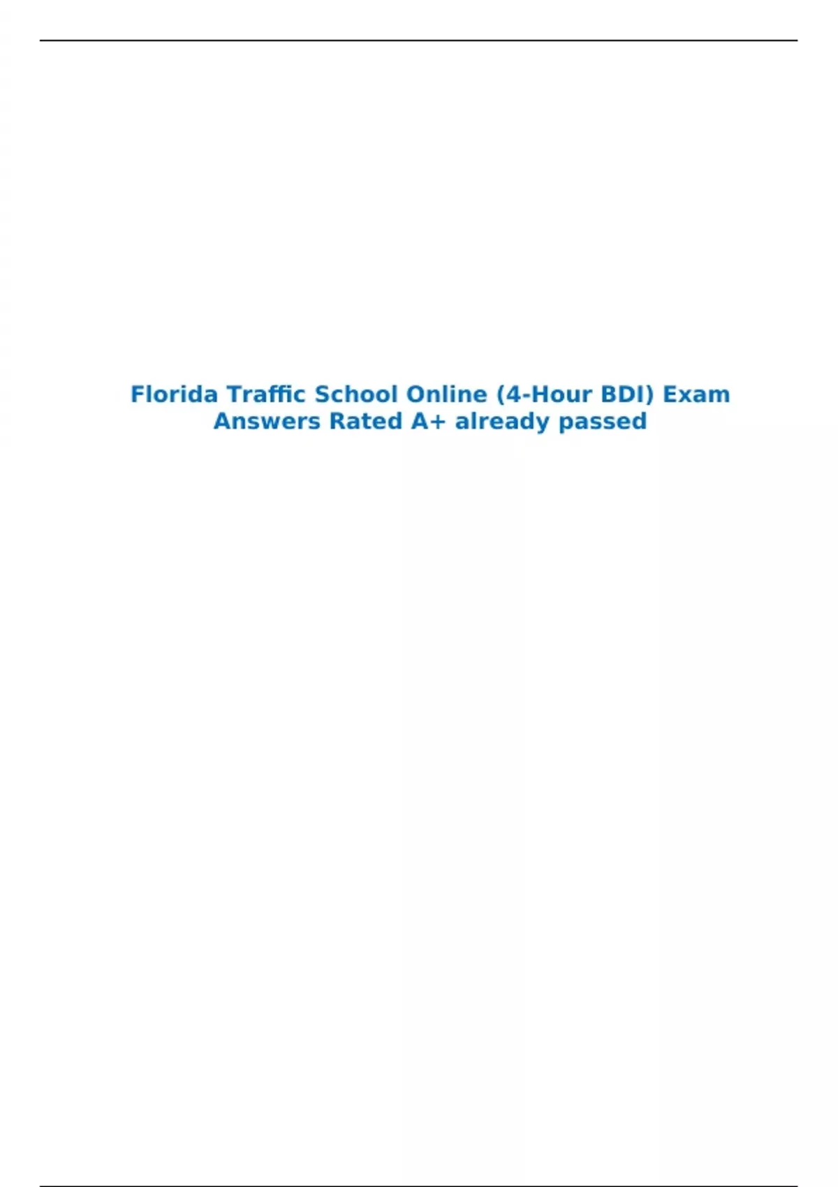 Florida Traffic School Online (4-Hour BDI) Exam Answers Rated A+ already passed
