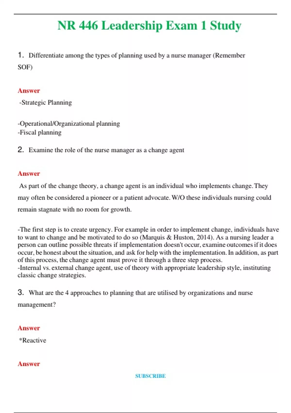 NR 446 Leadership Exam 1 Study (Latest 2024 / 2025) Questions & Answers with rationales