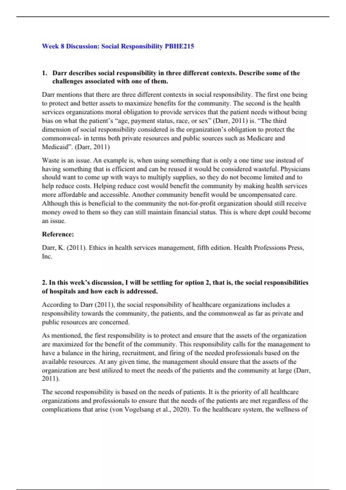 pbhe 215 week 8 discussion social responsibility