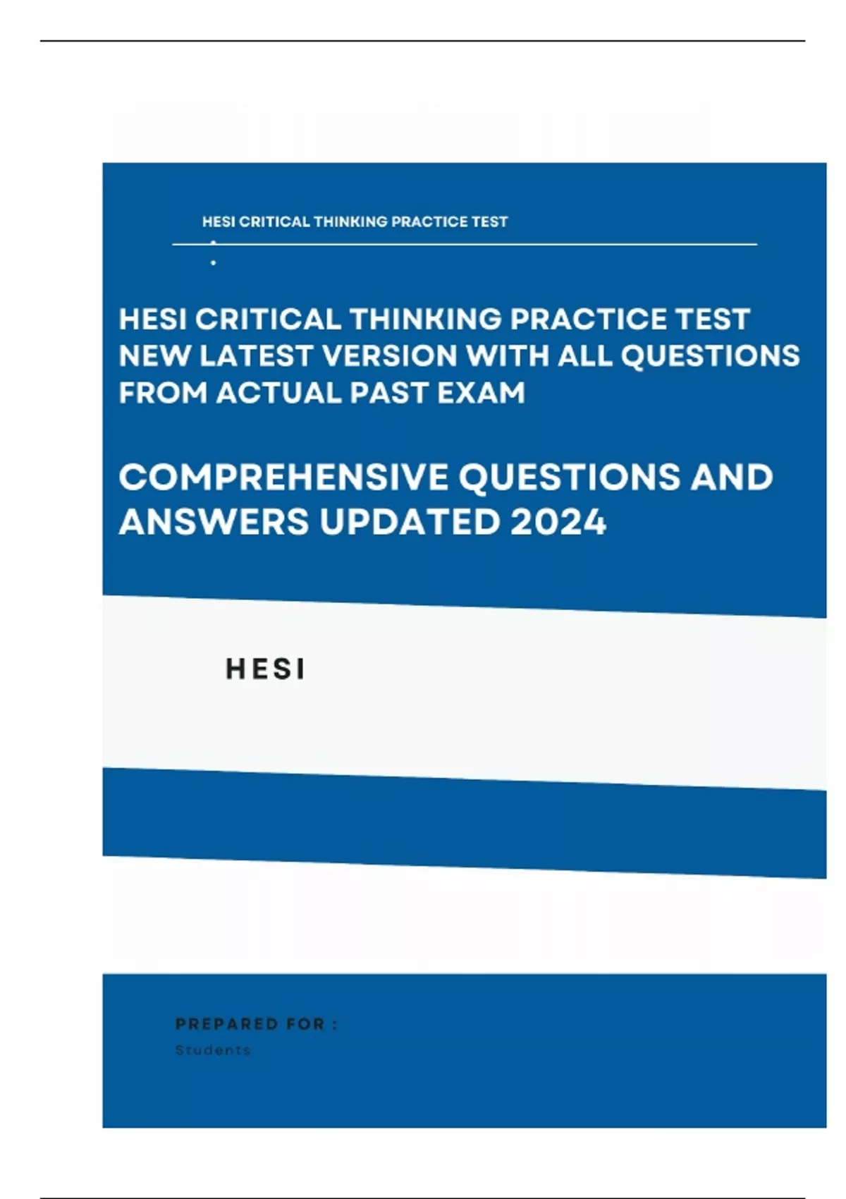 2024 HESI Critical Thinking Practice Test New Latest Version Comprehensive Questions and Answers 100% Accuracy With Rationale